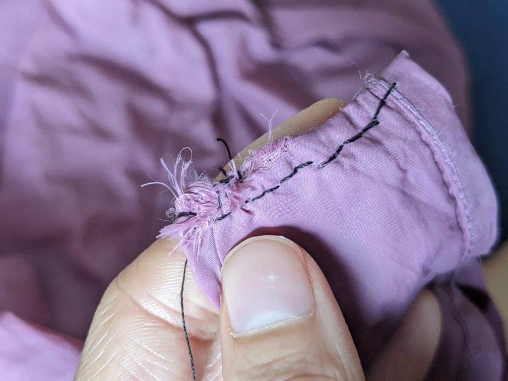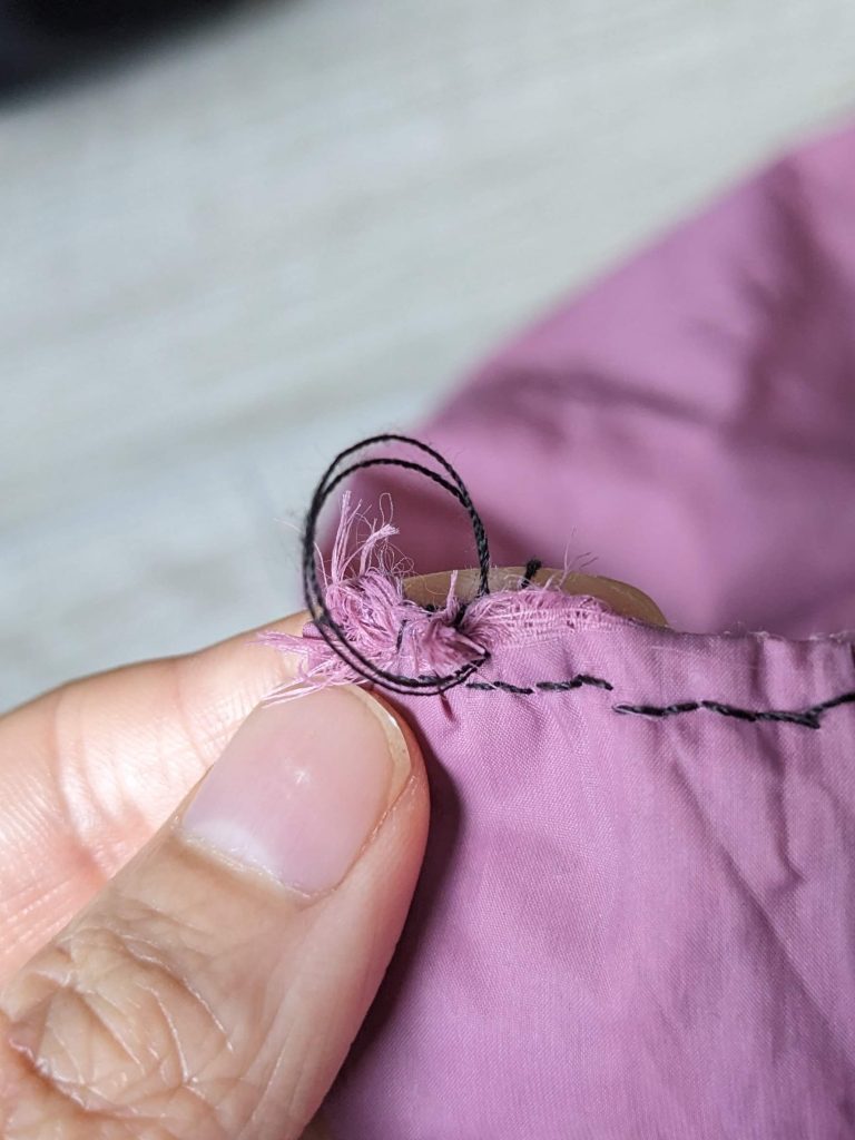 - you don’t need to double the thread unless it’s a button. It doesn’t make it stronger, the thread is too thick and it’s more likely to get tangled.