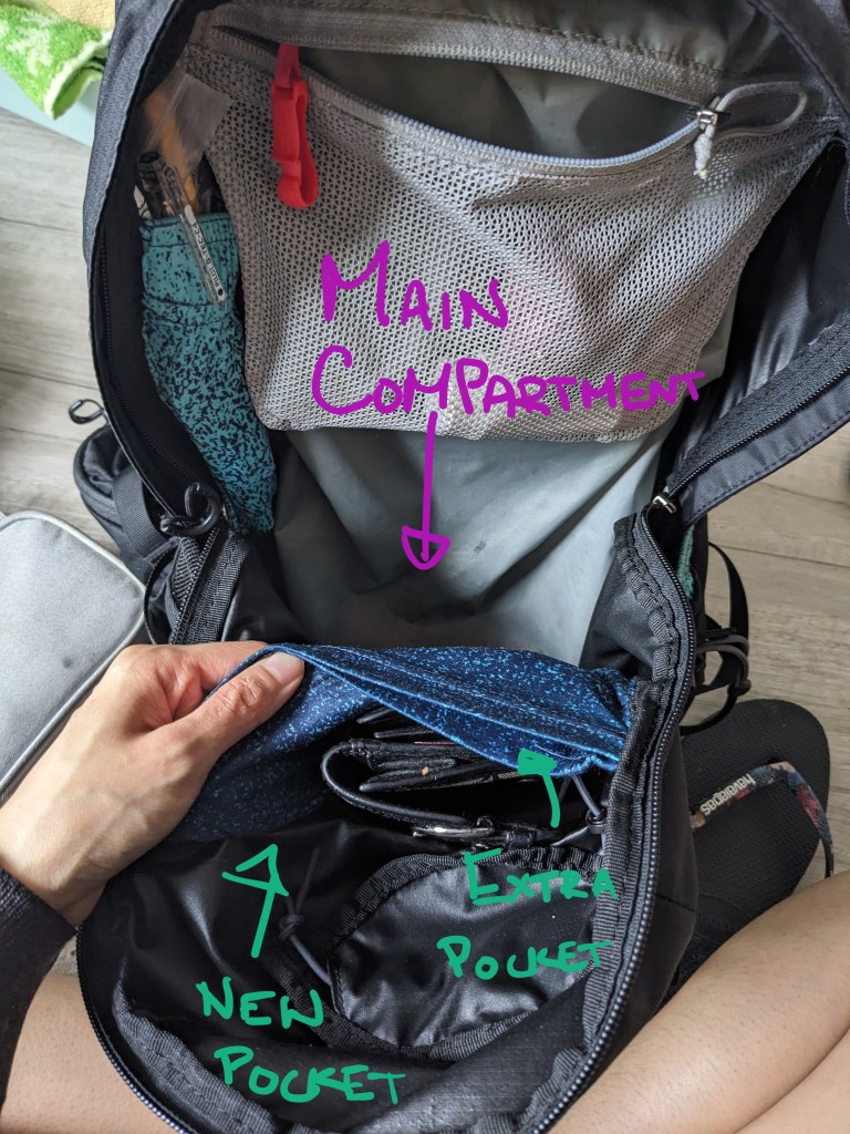 While it’s amazing though, what I noticed while in the early months of travelling was that it didn’t quite fit my needs. The main compartment was huge and I would lose items inside plus every time I’d bend over with my backpack on, my thermos would fall on the ground…my thermos is only 300ml so super tiny. I think it’s incredibly important for me to stay organized while I travel so I don’t lose items…or waste energy thinking I’d misplaced something. So my mind got thinking…well I could A) either look for another backpack which would also have it’s own design flaws…or B) just adapt this one to fit my needs.