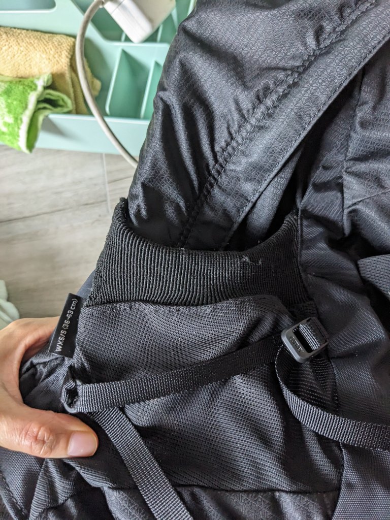 I ended up doing this 3 months into travelling when I was settled down in the hostel in Albania. I’d wanted to do it earlier, but I didn’t have any fabric thus it took a little while. Luckily, people leave clothes behind in hostels all the time! I don’t have a picture of my backpack pre-adaptations so I’m using a stock photo from the Osprey website.