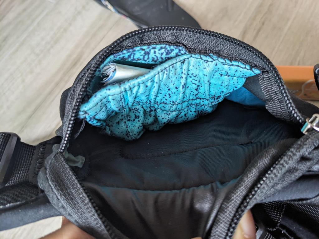 | Making extra pocket in main compartment | 1. See where the seams are strong enough to attach a pocket 2. Cut fabric to approximate size 3. Sew down frayed ends 4. Attach pocket to backpack seams by turning backpack inside out as much as possible |