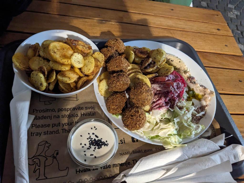 After meeting friends in the park and eating delicious Slovenian snacks, Lea and Leti took me into the centre to view the sights and eat at her favourite falafel restaurant.