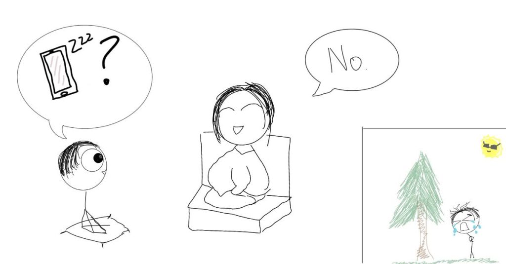 “I only need my phone for using white noise while I sleep. This way I’ll sleep soundly and can properly meditate and learn the instructions. The teacher will definitely understand if I tell her I won’t use it for any other purposes. It’s logical and if I don’t sleep enough, I have had thoughts of self-harm in the past. She’ll let me have my phone”