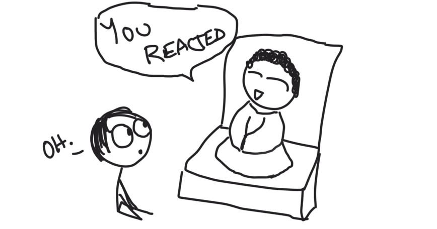 AT: “You were incorrect. You reacted. Instead you need to pause and ask “why” calmly.”